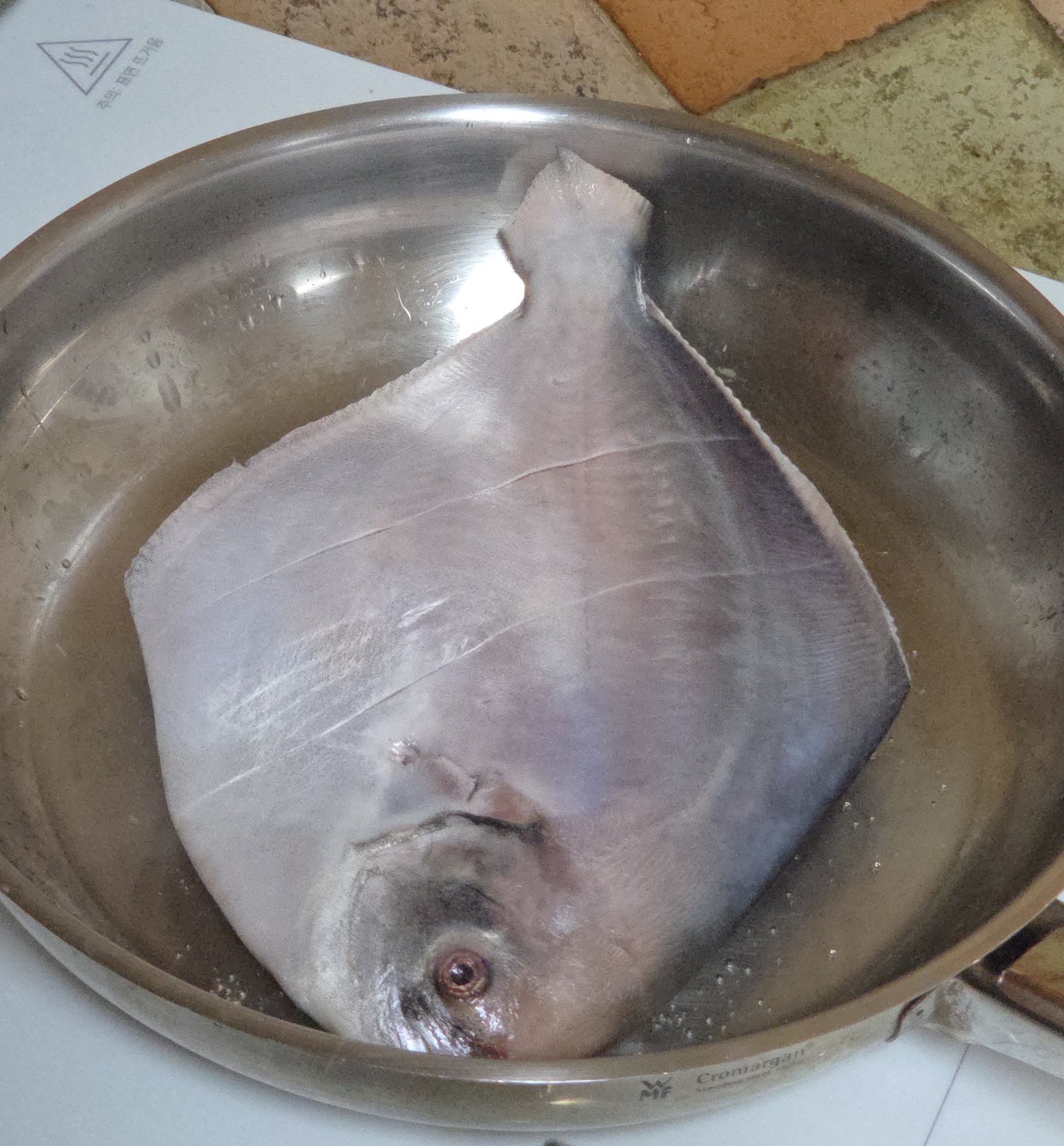 이제 달군 후라이팬에 병어를 구울 차례입니다.